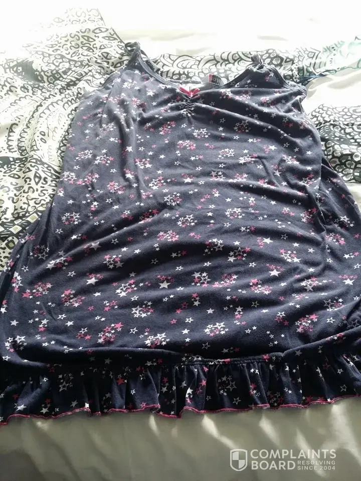 on the 29th of may 2017 my friend bought me this item from the store at barnsley, ive worn the item for bed and its dyed all my skin blue, all my brand new bedding blue, i rang customer services yesterday and the lady was rude to me saying i need 2 prove it, sorry but i got in the shower and washed it off me, and ive also boiled my bedding to get the blue dye out, but ive only washed the night dress once and its all faded and it looks years old, my mum got me some pjs from yours clothing for christmas that ive worn and washed loads and they still look new, i want this matter resolving please im not very happy with this at all as this was bought for a birthday present
