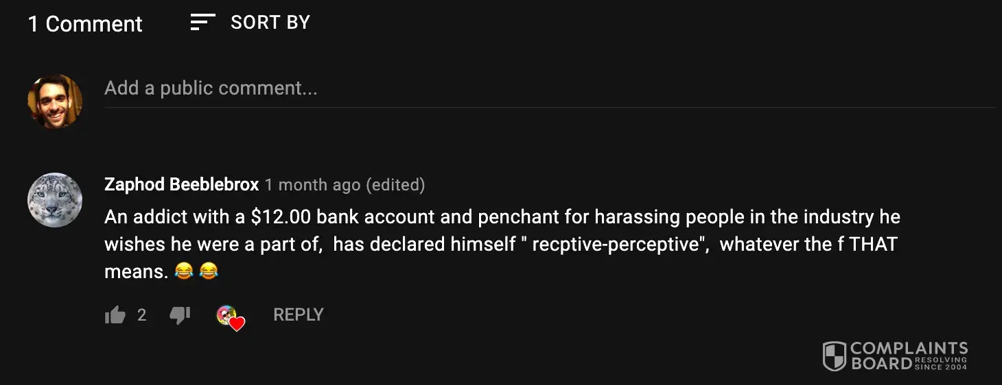 I have reported the channel and Michael to YouTube several times with no response. All of the people in the comments attached are followers of Mr. Thompson.