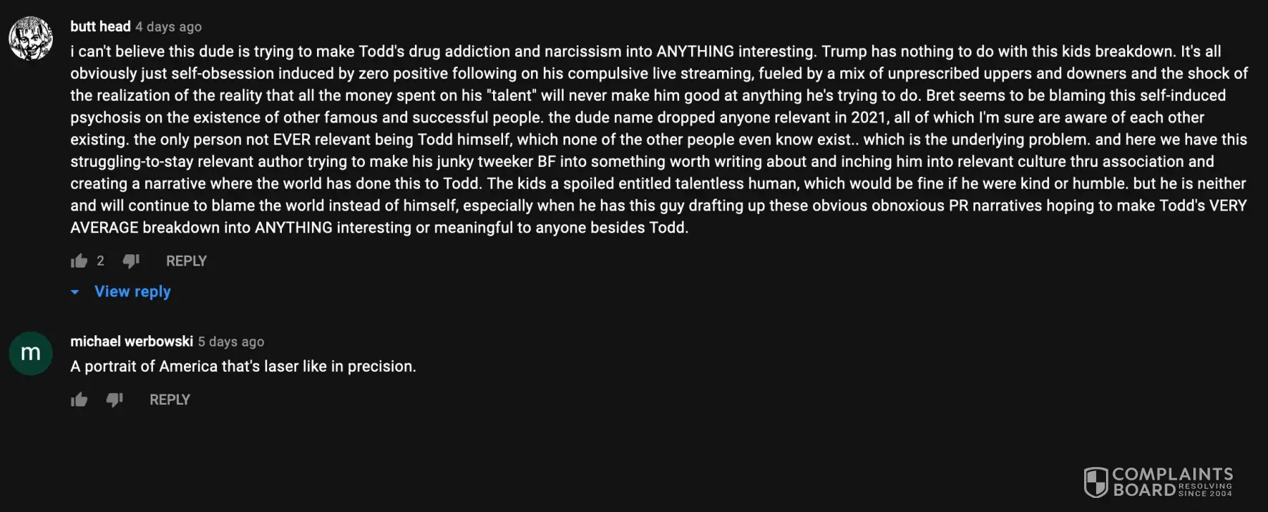 I agree with Todd Michael Schultz's finding that this channel and Michael Thompson have directed targeted harassment at him while on the YouTube platform. It is terrible to allow a YouTube user to download content without the permission of the original content creator. Todd Michael Schultz's video content was then used to further harass him in episodes that were cruel and intended to harm Todd personally and also his reputation.
