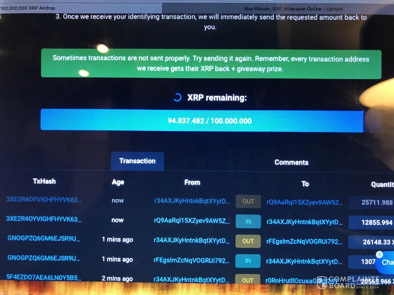 I was watching a "live" Ripple broadcast (I supposed) and there was a website attached running a promotion and I interacted after participating in the chat. I sent arp to the site and of course realized later that there were issues that Ripple had with YouTube over their company being used fraudulently to take money from actual Ripple customers.