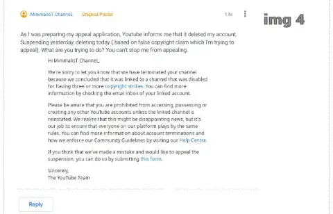 Instantly, on April 14, the status of various videos are changed to 'strike' and my account is immediately suspended. '