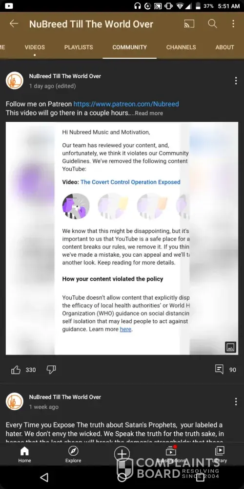 They resolve it by deleting my complain... Why is that? I wonder what's worst someone speaking " miscommunication or they deleting it.. i took a screenshot anyways it's was youtube medicine miscommunication policy