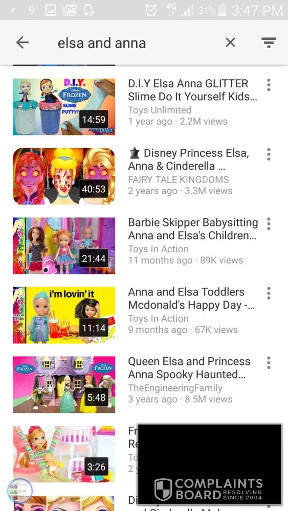 Whatever children's tube clip we goto say for example Anna and Elsa etc, there is alot of sexual content, people going sick and throwing up and doing disgusting things on the toilet. Violent content on some of these clips isn't acceptable for viewing from a small child. Movies which contains violent, vulgar scenes, sex scenes and disgusting items are mix with nice, good movies so it's not possible avoid them or keep them away from children eyes. Movies like this put in children heads a lot of agresiv behaviour and they loose respect to everything and loose clear vue on life. We try to teach our children peace and respect not violence or fighting... it's highly unacceptable and we hope YouTube customer service gonna protect this children links - movies from this.