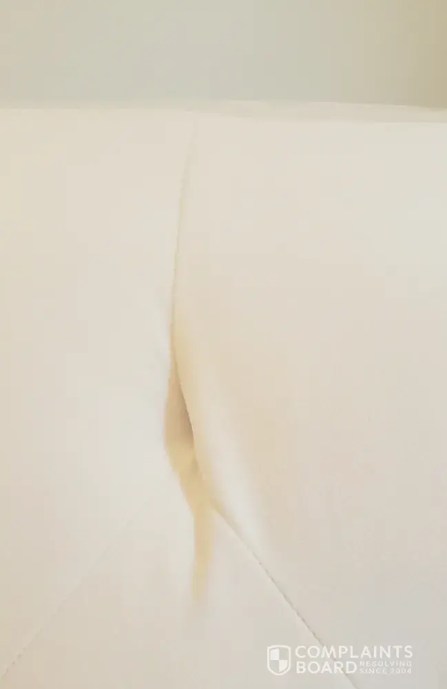 Z Gallerie has completely failed on every level. Circa Sofa arrived with center lower front indentation that's deformed un-tufted, a powdery white substance spilled out. Two top Right tufted indentations are deformed smashed overlapping, pillows are both crumpled up, bumpy mess, totally unacceptable! Seven (7) photos sent to Escalations. Price Adjustment Requested.