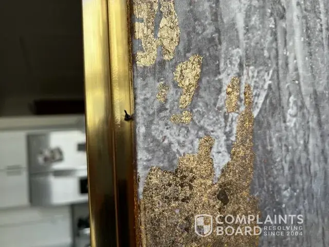 I received my order 403590 (DSI SWORD OF DOM - 40X60) on Wednesday 1/5/21. The frame was not only split due to a screw being screwed in too tight but a nail is also threw the picture from the back side point out of the frame (SAFETY HAZZARD). I have asked to receive a price adjustment for the defective purchase as well as the shipping fee credit ($91.85...