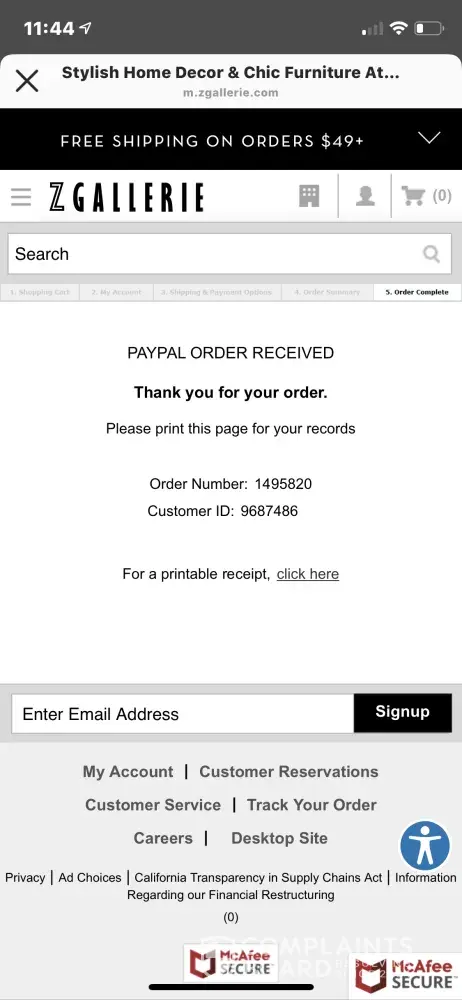 A purchase made on your website of items that later z Gallerie claimed was a system glitch in pricing and refuse to honor purchase. I made a large purchase on August, order number 1495820 customer ID 9687486 . The prices seem to be amazing for such an expensive company so I called the next day and asked if there was an error on their end and if I should expect a cancellation on my order they said "no there was no error it was a flash sale and i already paid the items so not to worry". I asked them to please send me a confirmation email. They said they would but I never received it. Days go by and I still don't have an update on my order so I call the company back and they tell me my order has been shipped and they were going to email me a tracking number since fedex still hadn't provided one. Days go by and still no news from z Gallerie. I called no less than 4 times and spent I've 40 minutes on hold each time. Wrote emails to corporate about my order status. There was a ticket created to find me a tracking number since the status of my order said shipped on 8/28/2029. Ticket number is [protected] and a person named Javier was going to personally take care of my case. I wait 3 days and call For a status when I was told AGAIN to give them more time to resolve the case. Finally I call 9/20/2019 and a customer service tells me that there was a glitch in their system and there was no way the company would honor the prices I received. I was transferred to a manager where I explained in detail how the situation was handled and he refused to help me. He told me no matter who I spoke with no one would help me and honor the order and that even though some orders did go out at the "glitch pricing" mine was caught before and they were going to issue a refund. I told him I did not authorize a refund especially after I spent A total of over 5 hours of hold time looking for my items in which in various occasions representatives told me they were already shipped. He told me that people were getting fired for the issues but no matter what i said I wasn't getting my order. Not only did they never reach out to me to tell me I wasn't getting my order or a refund but they handled the situation very poorly in keeping my money for 2 months
