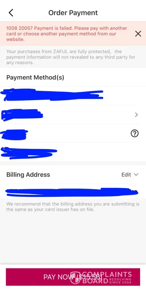 I ordered a few items in total of $300+ and they asked me to send a payment verification such as proof of address and such. I have sent the documents in the customer service tickets and they replied the same thing all over again that they need a payment verification which includes proof of address. I feel that the customer service tickets are computer generalized as they did not respond to any inquiries that I wrote and the reply was so formatted in a way that you could see it was copy-pasted. I have been in this situation for three times and I wonder why I still buy from them. The last three orders that I bought was refunded without any prior notice. For those of you interested in ordering from zaful, I suggest that you go find any other online stores as the more I read about the complaints, the more it gets relatable.