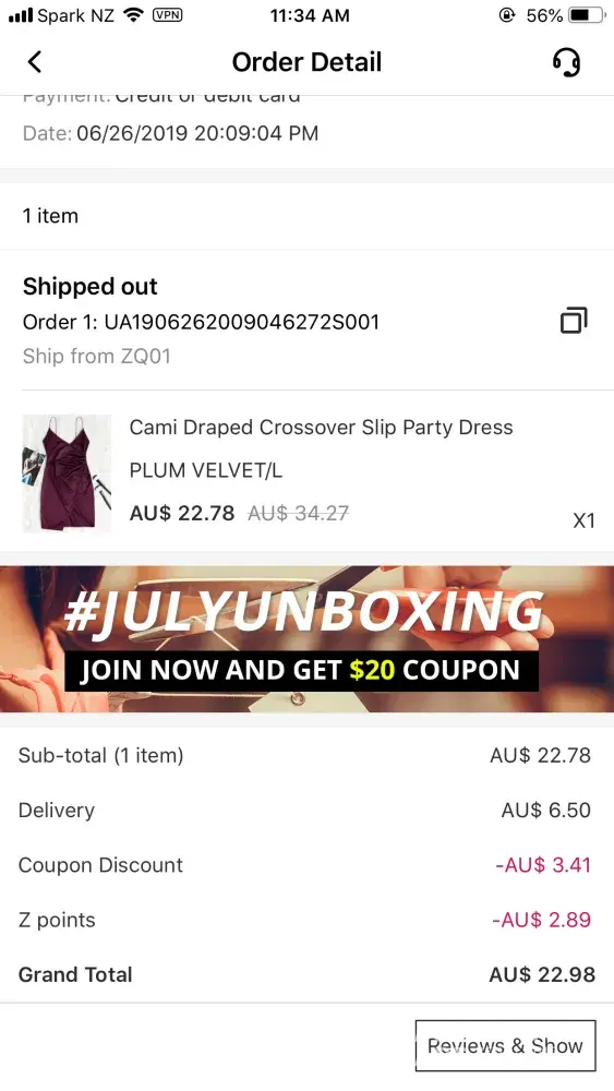 Zaful product hasn’t shipped