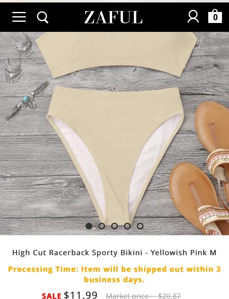 I ordered a high cut racer back sporty bikini in a yellowish color on December 23 and I still haven't gotten in the mail and I'm thinking it was sent to the wrong address. I ordered another bikini and got that one but not this one and it's already been more that a month and a few weeks. It's already January so I've been expecting it and still hasn't come.