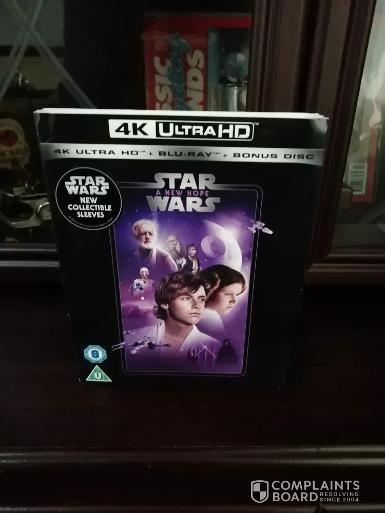 Basically I have spent nearly £200 pounds on Star Wars 4K ULTRA HD Blu Ray disks. The first two arrived & both of the cardboard boxes are dented on all the corners and I orderd 9 if I remember rightly, so if the first two arrived damaged I can imagine the rest will be same. Can't get through to them at all no phone number, they have a live chat but it's not working, you can only send one pic as proof of damage and it takes two days for them to replie. Their not for me, they for Christmas for someone else. Hope you can help.