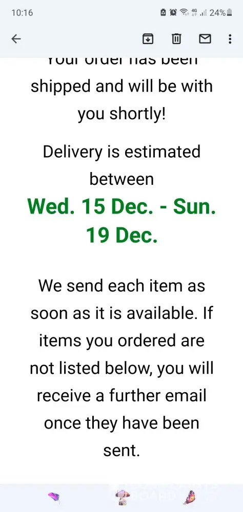 As I'm sure you can understand, we are now in a very busy time of the year, and some of our orders can take a little longer to be dispatched.