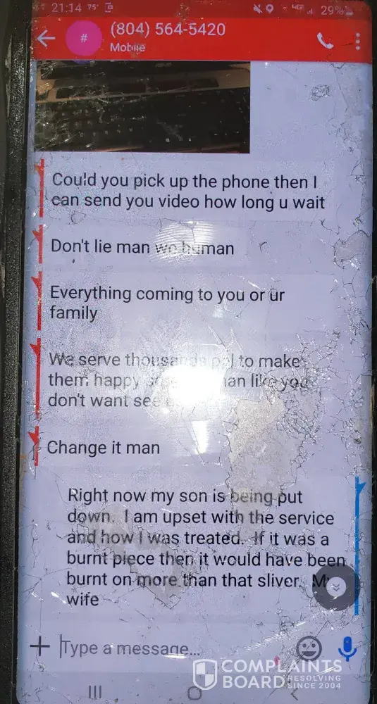 We had an issue with a sandwich we ordered tonight having something rubbery and tube like embedded into it. My husband went back up to the store, which is a 20 minute drive each way, and was rudely met with an employee. Once he came back home he submitted a complaint online for the service. Since then we have been receiving harassing calls and texts from the manager. Extremely rude and calling us liars. We will not be returning to this location and encourage corporate to look into the many complaints this location has received.