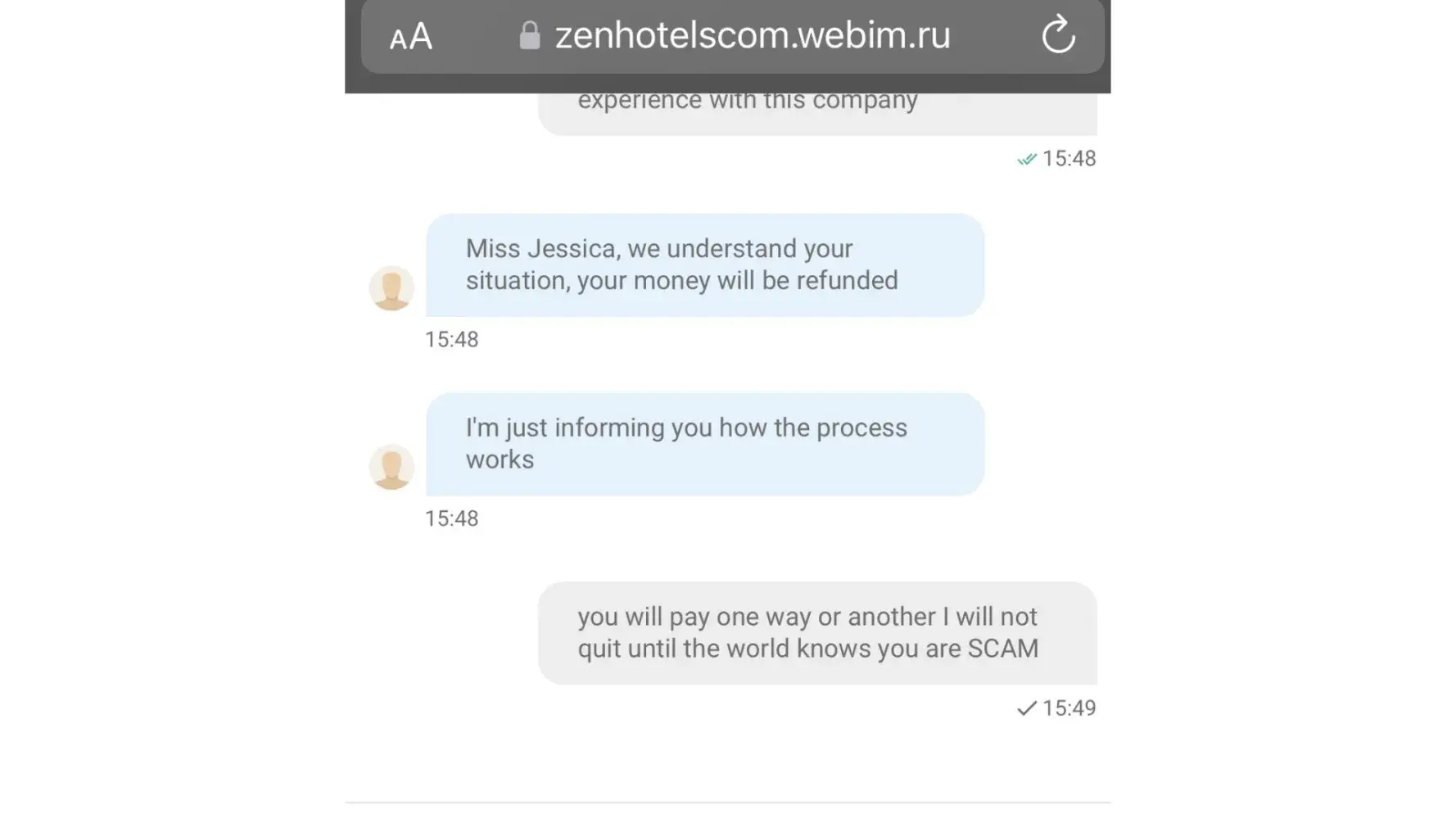 I am left feeling disappointed and angry at the lack of customer service and transparency from Zenhotels. I trusted them to deliver on their promise to provide me with a refund and they failed to do so. It is unfortunate that a company that is supposed to make travel booking easier and more convenient would engage in such unethical practices.