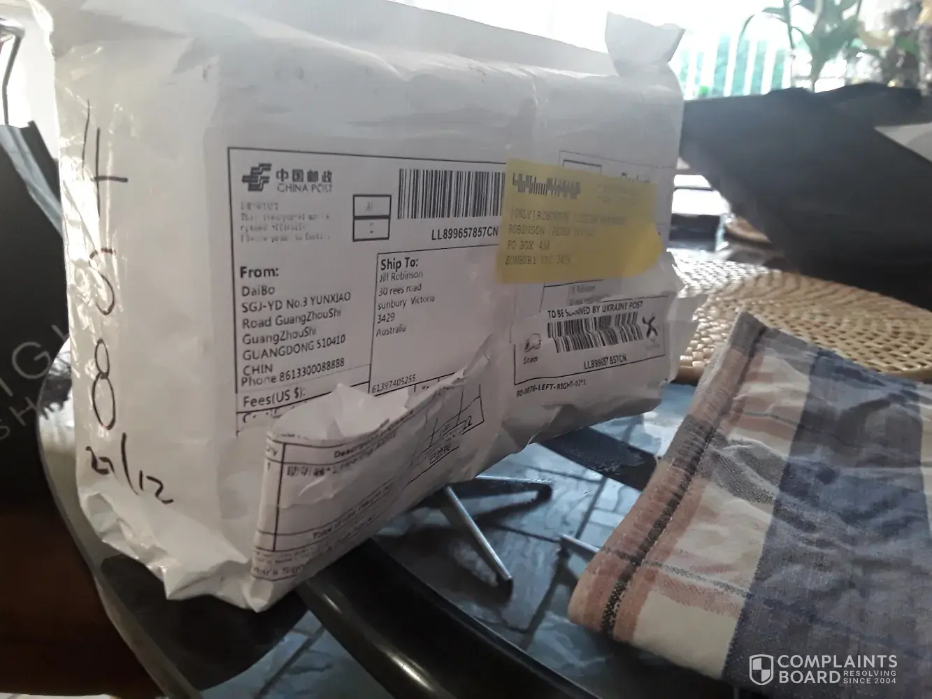 > Australia Post tracking LL899657857CN confirmed received.