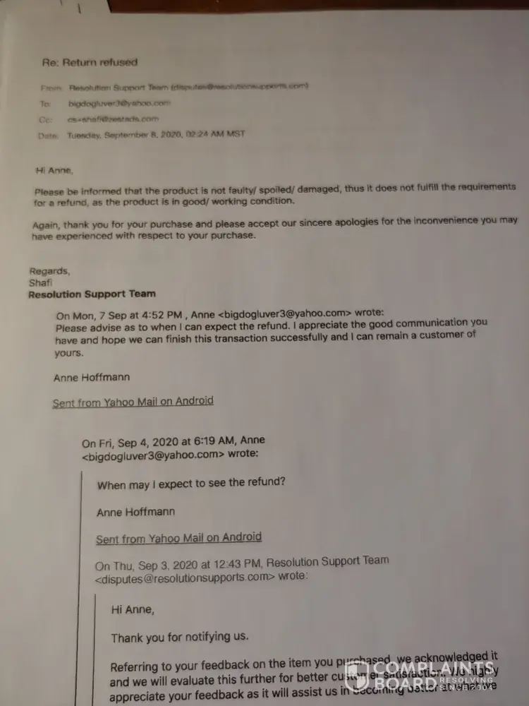 I was shocked at how completely ridiculous and unreasonable their demands for proof of a faulty product are. After much time and effort preparing a video small enough that my email service provider would allow to send (25mB) I met their demands for proof of faulty product & provided all the items they "requested" and after over a month I still I have not received a refund.