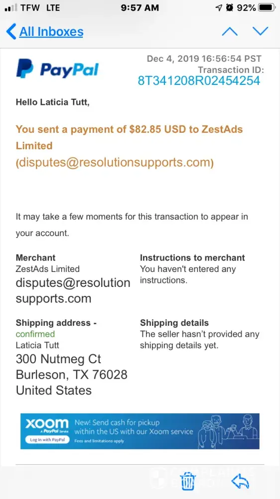 Reporting to BBB, (already reported to PayPal) and anywhere else I see this company name associated with it.
