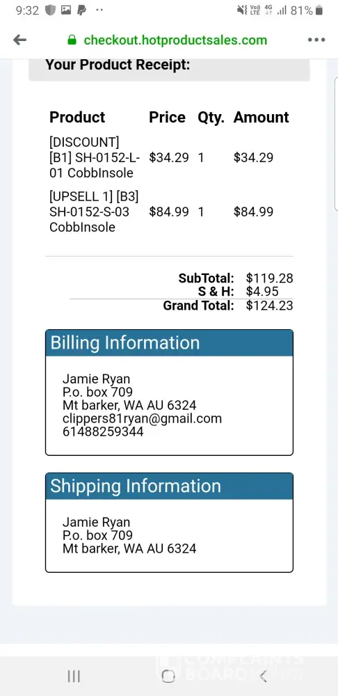 I ordered a pair of cobbinsoles, i then had an upsell order added that I do not want and do not know how it was added, I only want the first pair of cobbinsoles I ordered I do not want the upsell pairs, can you please please rectify the situation and refund me the upsell pairs to my pay pal account, I want the single pair not the upsell pairs
