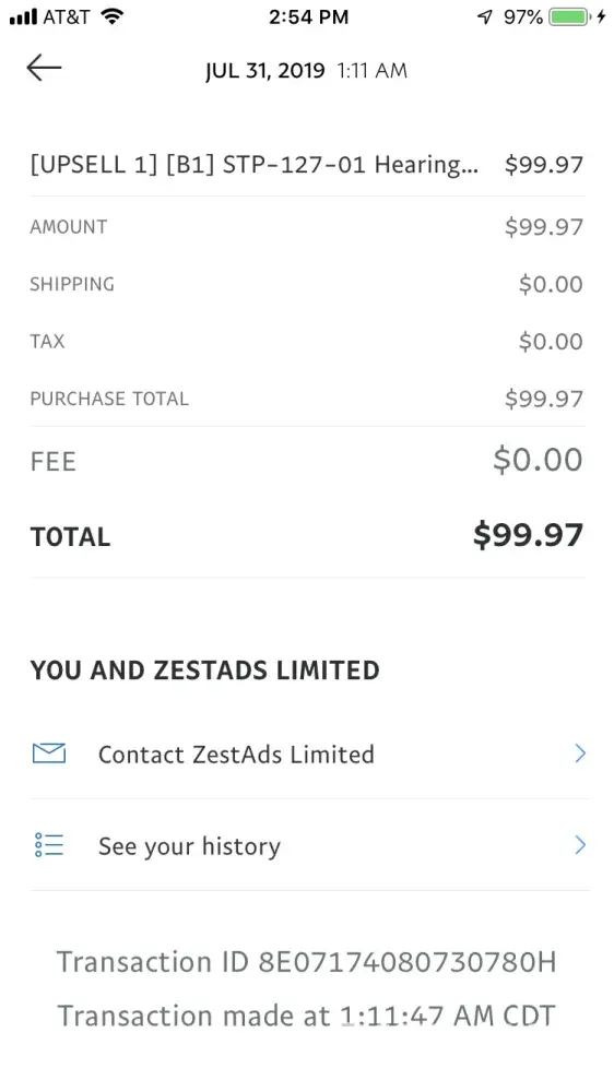 Ordered HearingFam hearing aids and never received them. They took my money through PayPal but PayPal doesn't help me get my money back so I am trying to get it back from my visa that PayPal is linked to. Nobody wands to take responsibility. Zestads has also not responded to my complaint.