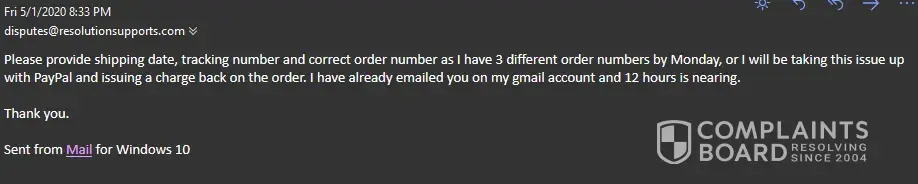 You sent a notice to let me know the product has already shipped and you provided fake shipping information, when I try to look it cannot find the source. I have sent emails to your company and do not get any responses or assistance.