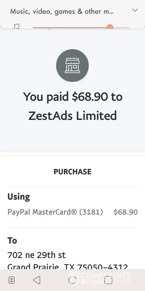 You sent a payment of $81.90 USD to ZestAds Limited