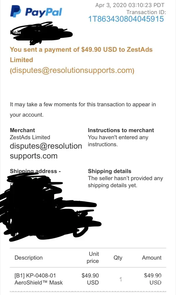 I ordered a product that doesn't exist because this company is a scam and I lost $49.00 for a mask that never arrived. There is still a whole thread of these scams from this "company" on pay pal and I just filed a dispute. If pay pal offers a link to many disputes and issues with this scam false company, consumers should be warned before they try to make a purchase and they need to be taken down! Hey zestads, you will be severely punished by the law eventually. I highly suggest you refund everyone. Now. You are probably some entitle a-hole living it up off of others in need collecting money with zero products delivered. Enjoy your crappy future life in jail with covid-19.