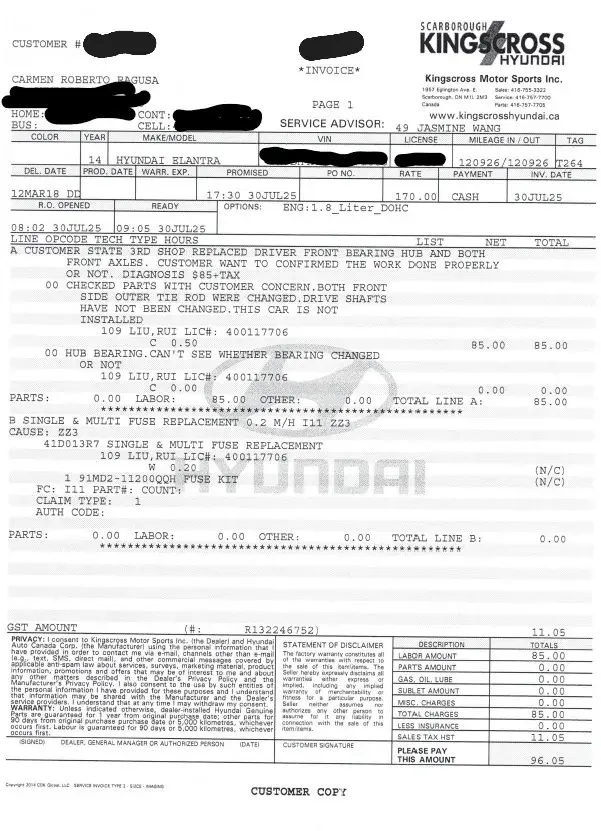 I paid over $3,100 cash at Zizoo Auto Mechanic for axle and hub replacements on my Hyundai Elantra. A Hyundai dealership inspection later confirmed the axles were never replaced. Despite this, I was charged $820 per axle and $430 for the hub, nearly double Hyundai’s pricing. Tie rods were changed without authorization, and I received no proper invoice —...