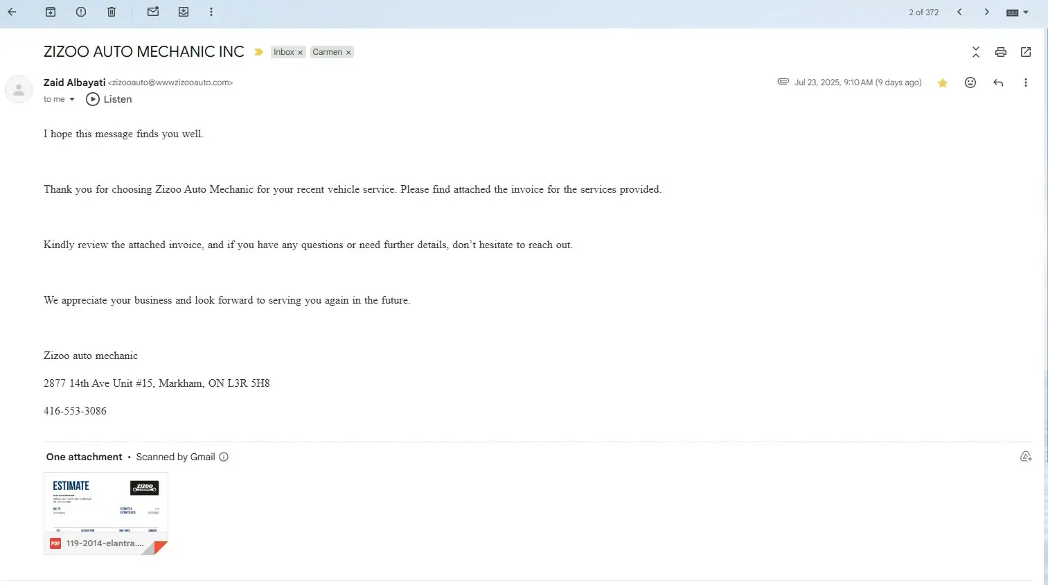Zizoo Auto Mechanic address2877 14th Ave Unit #15, Markham, L3R5H8, Canada