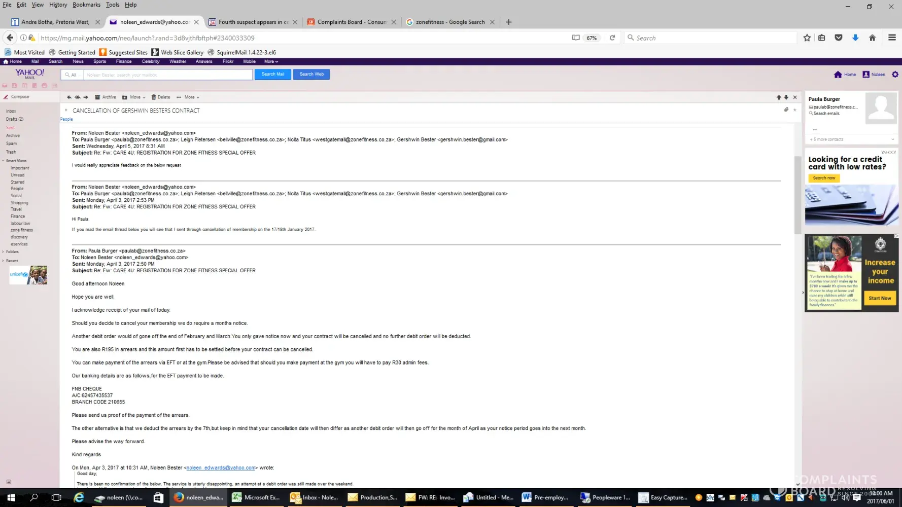 Firstly it seems to me that Zone Fitness thrives on scamming there clients. My contracts with Zone Fitness expired months ago yet they still debiting my account. I emailed Zady van Rooi who promised that Paula Burger would call me and assist in cancelling my account for good. Today is the 1.06.2017 and you are still debiting my account. WHY! Who is going to pay my bank charges? This is worst service I have ever received in my life. In fact it's not a service it's an injustice to consumers. I want this account closed and those months of unnecessary bank charges refunded. I will never rejoin again. You sold a dream, but the reality was all smoke and mirrors. You should be ashamed as Zone Fitness business to even still operate.