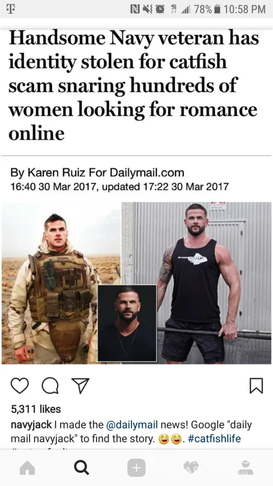 This man is a fraud and a scam artist he used Zoosk to scam people. He got me to email him at jw00550@gmail.com. he needs to be stopped he has taken pictures from Instagram and used his photos and videos. You will be able to tell when you search Instagram Naveyjack
