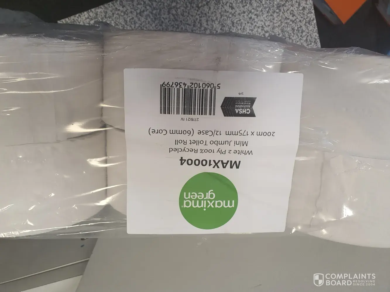 I ordered 18 blue centrefeed, they delivered 12 and delivery note stated 18, rang customer services 3 times, each time they told me they would look into it and call me back. Rang again spoke to claire who said she would call me back that day, didn't. They then send out another delivery, wrong item and wrong order, informed them of this now 3 times by email and zero response