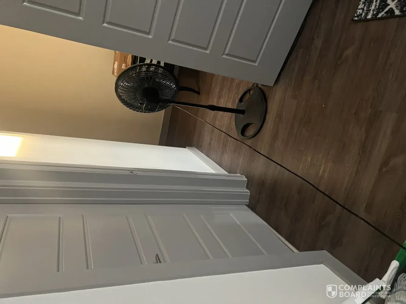 5. Kitchen cabinet with peeling laminate, creating openings that attract insects and render it unsuitable for storing food and other items. Urgent rectification is imperative.