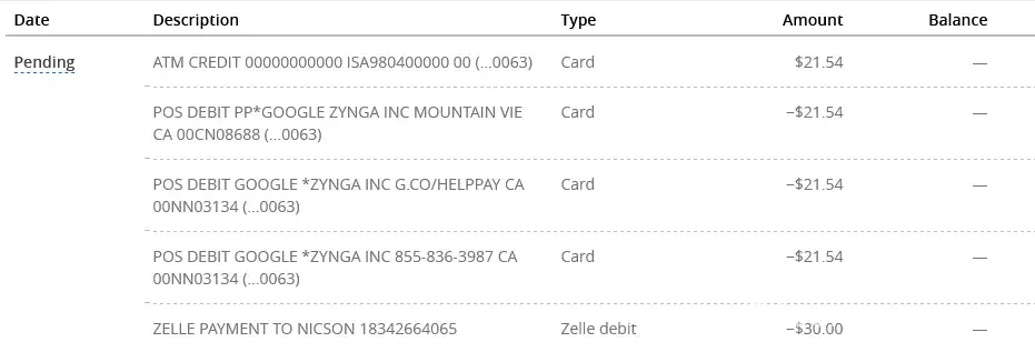 POS DEBIT GOOGLE *ZYNGA INC [protected] CA 00NN03134 (...0063)