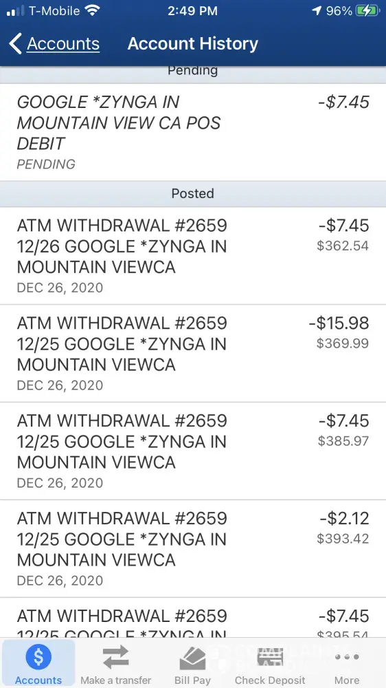 Zynga Unauthorized charges to my bank card