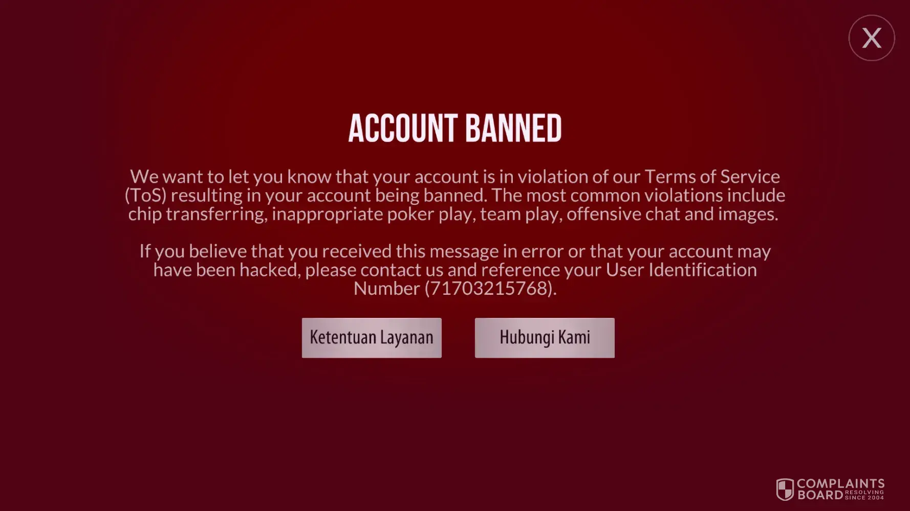 My acc [protected]@gmail.com get ban around 11.46pm on 24th May 2020. I only play big table only by joining others. I win alot of chips. I think someone make fake report against me. Please dont take fake report from others players and I hope Zynga should unban my acc back. Seriously hoping to get back my account with my winning chips. I believe zynga is a fair play in this situation Zynga was not fair to my account. Please revert soonest possible.
