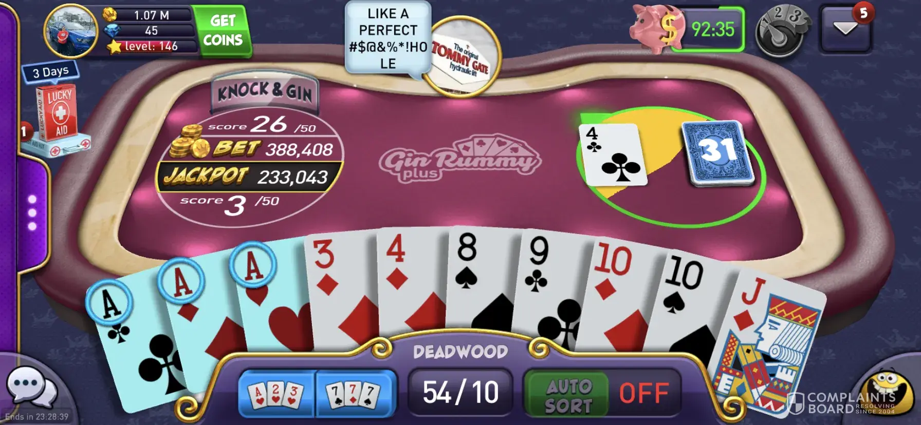 My opponent picked an ace of â™ ï¸ which was the first card to start the game - which I had also wanted to complete my set. But they picked it first. And it was a 50k bet game. However, just one hand later, my opponent got gin. And my ace of â™ ï¸ was no where in their hand even though they had picked it.