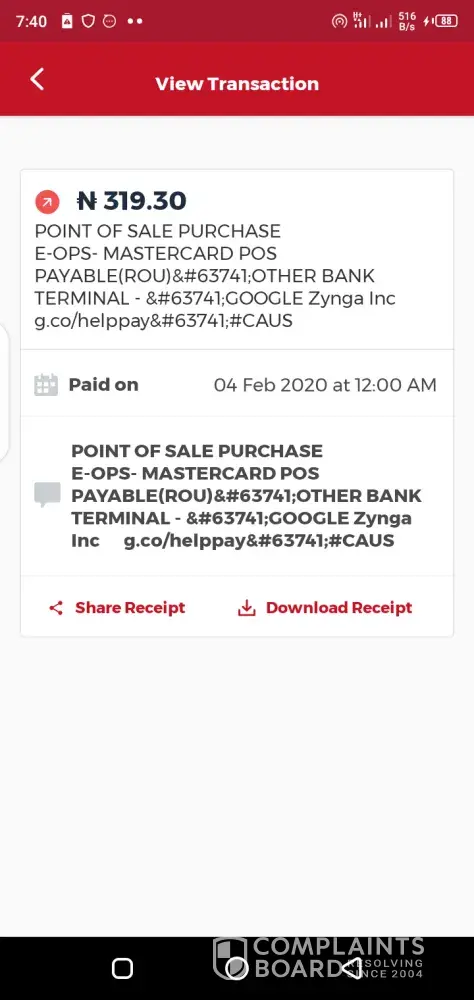 I have recieved 6 debits from 'google zynga inc. G co/helpay #ca" on, y bank statement in the month of august 2017 as follows
